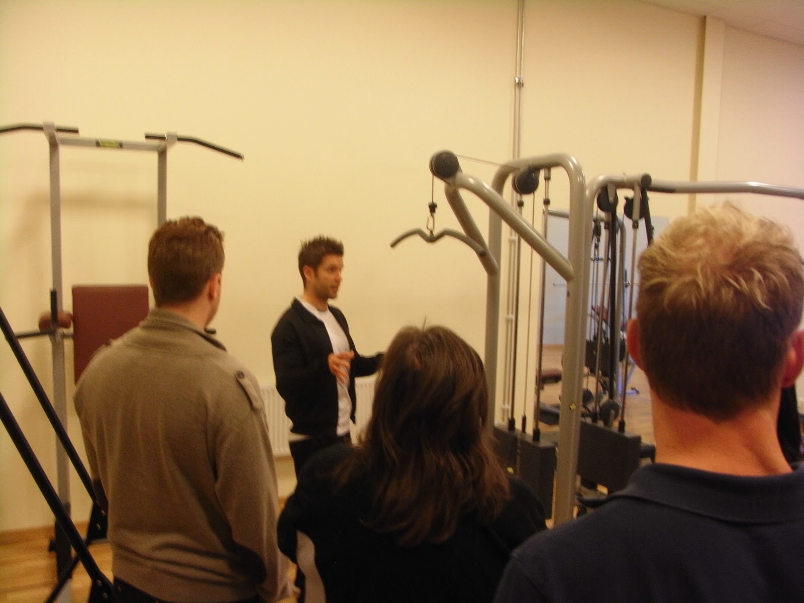 Sedan var det olika fysiska övningar där man skulle skriva ner sina resultat. Den första var hur länge man kunde göra "sittande stolen". |